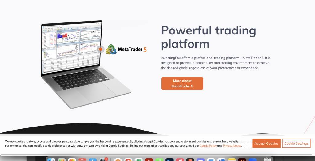 InvestingFox využívá obchodní platformu MetaTrader 5, která je oblíbená mezi obchodníky. Platforma nabízí širokou škálu funkcí a nástrojů, které usnadňují obchodování.