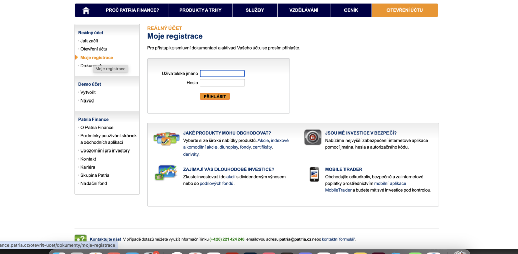 Patria WebTrader je základní desktopové obchodní prostředí přístupné z webových stránek brokera.