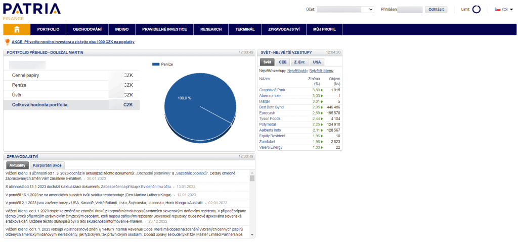 Obchodní platforma Patria Finance